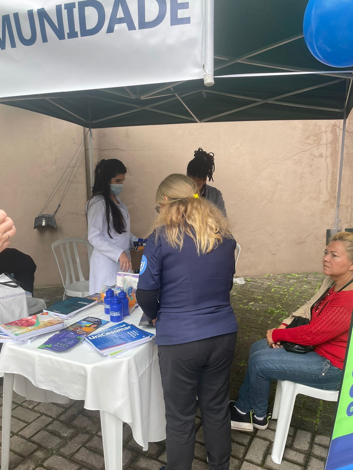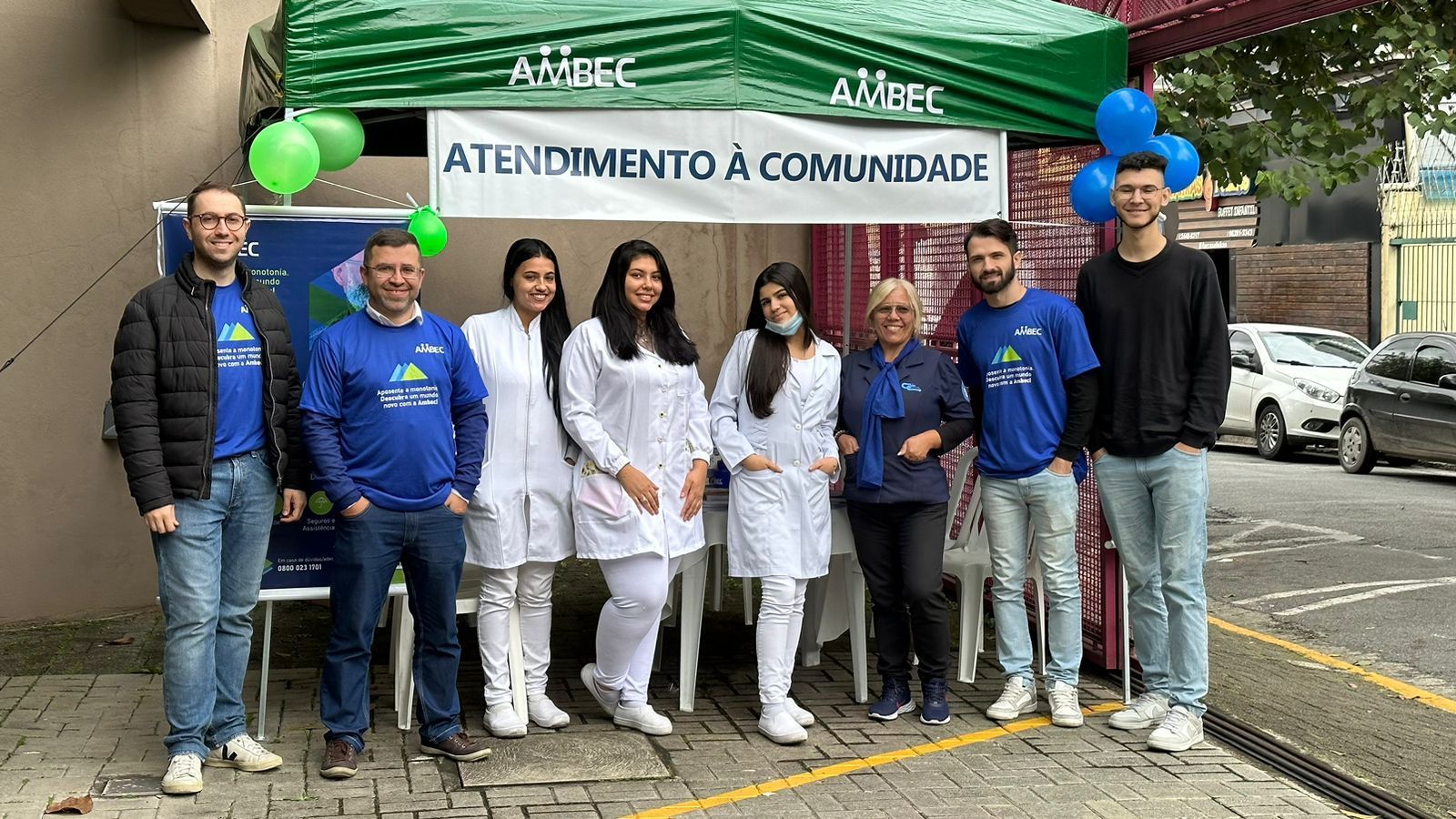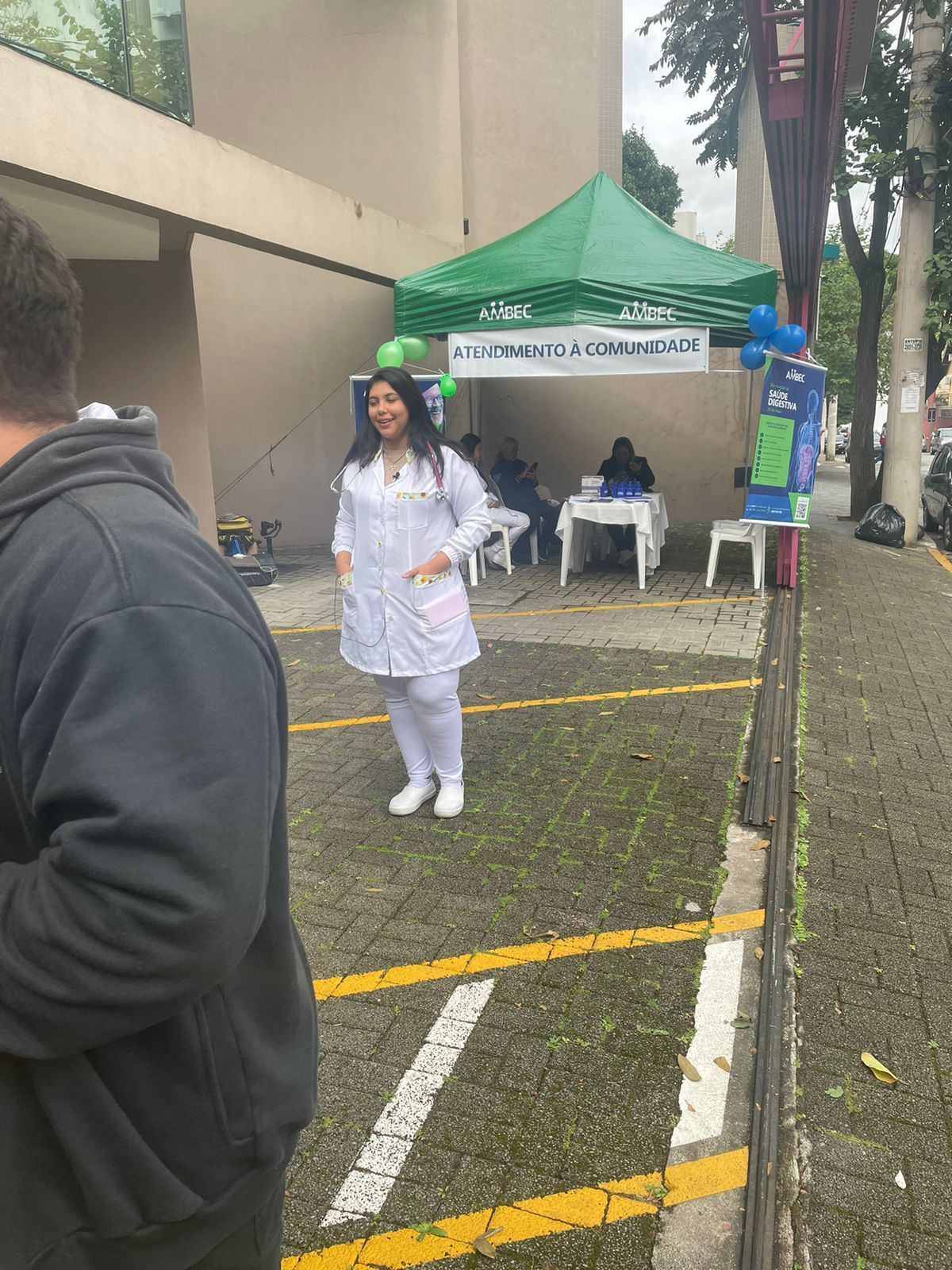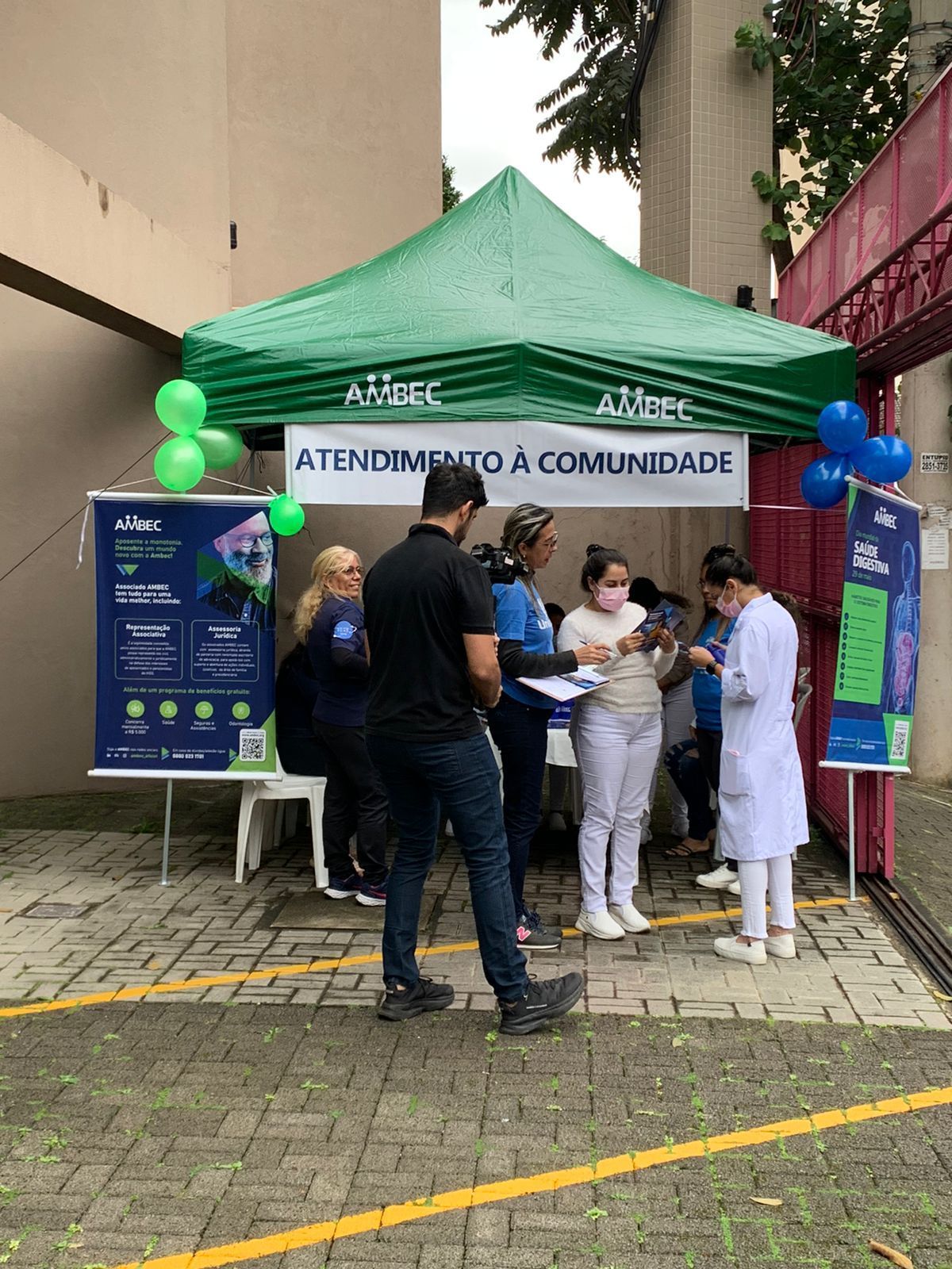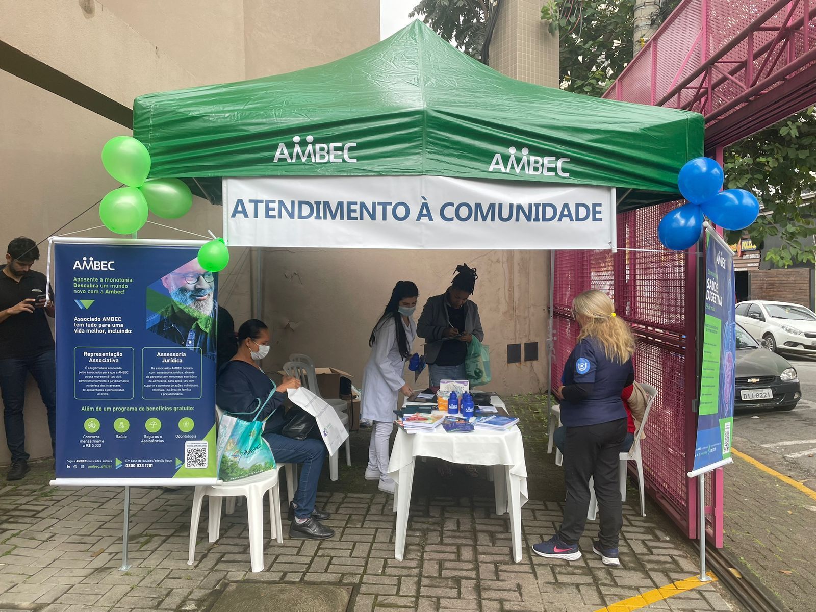 Além das orientações de saúde, os participantes receberam um squeeze como brinde, que fazia referência à importância da hidratação para a manutenção da saúde digestiva. Essa foi a primeira das cinco orientações fornecidas ao público durante o atendimento na tenda preparada pela AMBEC para essa ocasião.